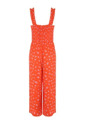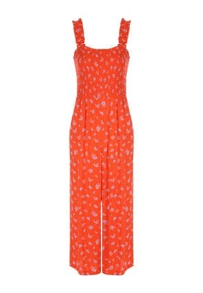 This lovely jersey jumpsuit will make an stylish addition to your new season wardrobe. In a vibrant red ditsy floral print with a square neckline, thick straps and a flattering shirred top, it can be dressed up or down with ease.