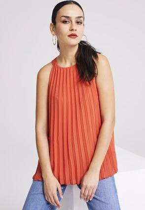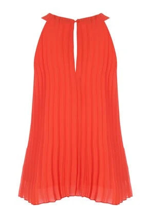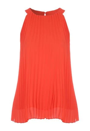 This gorgeous halter neck blouse will make the perfect addition to your new season wardrobe. Features a plain red sleeveless design with a pleated front and back, with a halter neckline.