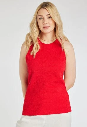 This lovely womens sleeveless top in bright red is perfect for your everyday essentials. In an all-over textured design it also features a round neckline.