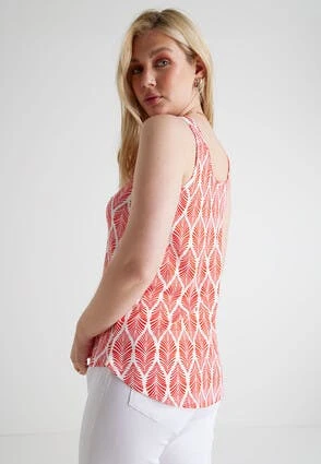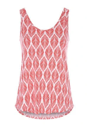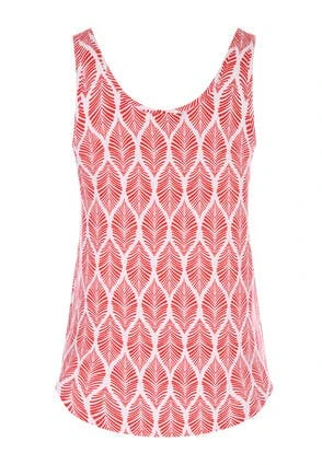 Update your new season wardrobe with this red and white leaf print vest top. Features shoulder straps and a scoop neckline. It’ll be a great addition for upgrading your Summer clothes especially when paired with the matching shorts!