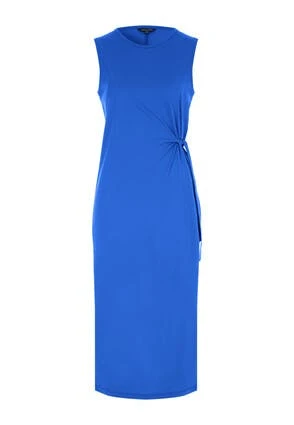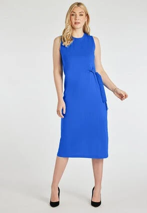 Create a stunning summer look in this plain cotton dress with side tie detail. With a sleeveless cut and over the knee length this is the perfect spring/summertime dress. Team with sandals, and over-sized hat and shades for a complete look.