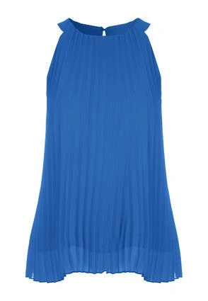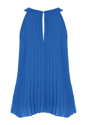 This gorgeous halter neck blouse will make the perfect addition to your new season wardrobe. Features a plain royal blue sleeveless design with a pleated front and back, with a halter neckline.