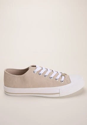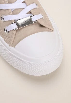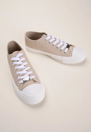 These womens trainers will make a versatile addition to your everyday footwear collection. In taupe featuring a smooth finish, a lace up design with silver detailing and a flat white sole with taupe stripe, they’re perfect for casual wear.