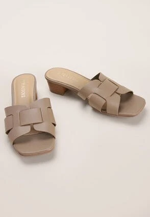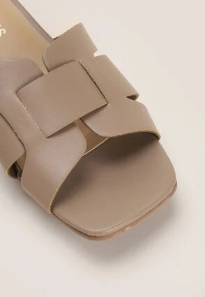 These gorgeous taupe leather-look mule style shoes are ideal for parties or smart evenings out! With an open toe plus a low-height block heel, these stylish slip-on shoes are perfect worn with a dress or skinny jeans.