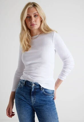 Stock up on your basic ladies tees with our great value long sleeve ladies t-shirt. This classic round neck tee is perfect for layering beneath cardigans and gilets for extra warmth.