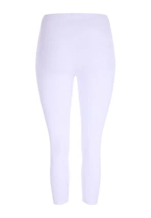 These women’s cropped leggings in white are the perfect base for a relaxed casual look. With an elasticated waistband and a fitted design, these leggings are ideal for exercise, casual wear, or layered under clothing.