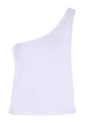 Summer essentials begin with this one shoulder white top. In a flattering ribbed design and on trend this summer season. Perfect for throwing on for a beach to bar moment with a sarong or pair it with some denim shorts.